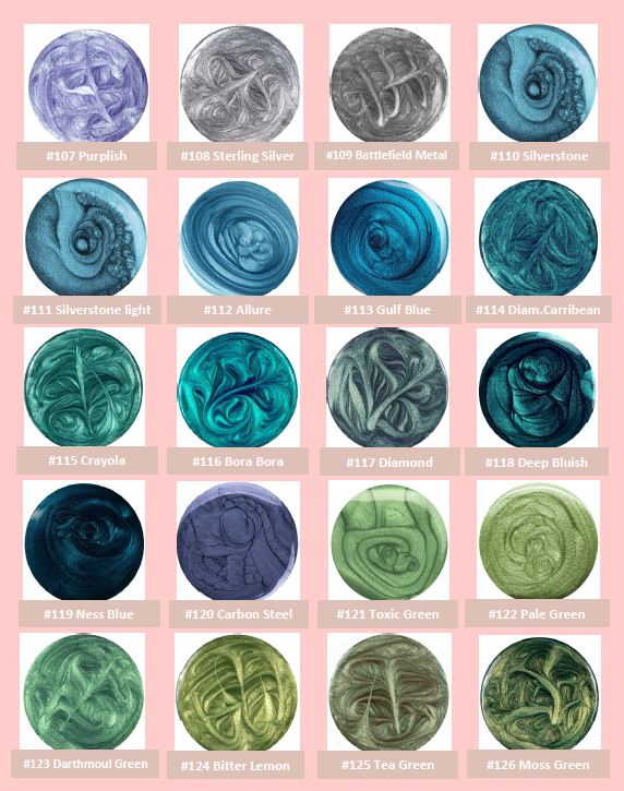Du kannst Deine Wunschfarben ganz nach Belieben kombinieren. Bitte achte darauf, dass Glitzer und Blattmetall nicht gemischt werden können. Sie können maximal übereinander gegossen werden. Entscheidest Du Dich für zwei verschiedene Glitzer / oder Blattmetallfarben, dann werden diese miteinander gemischt. Glitzer oder Blattmetall befindet sich beim Spender immer oben - wird sich aber ggf. über den ganzen Spender verteilen.